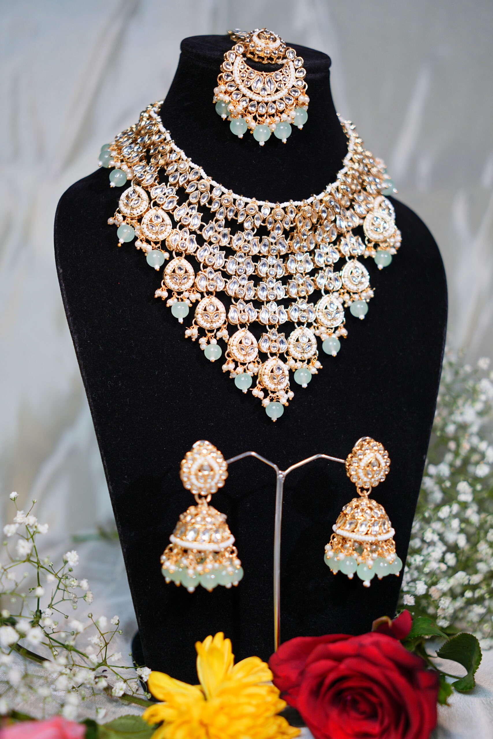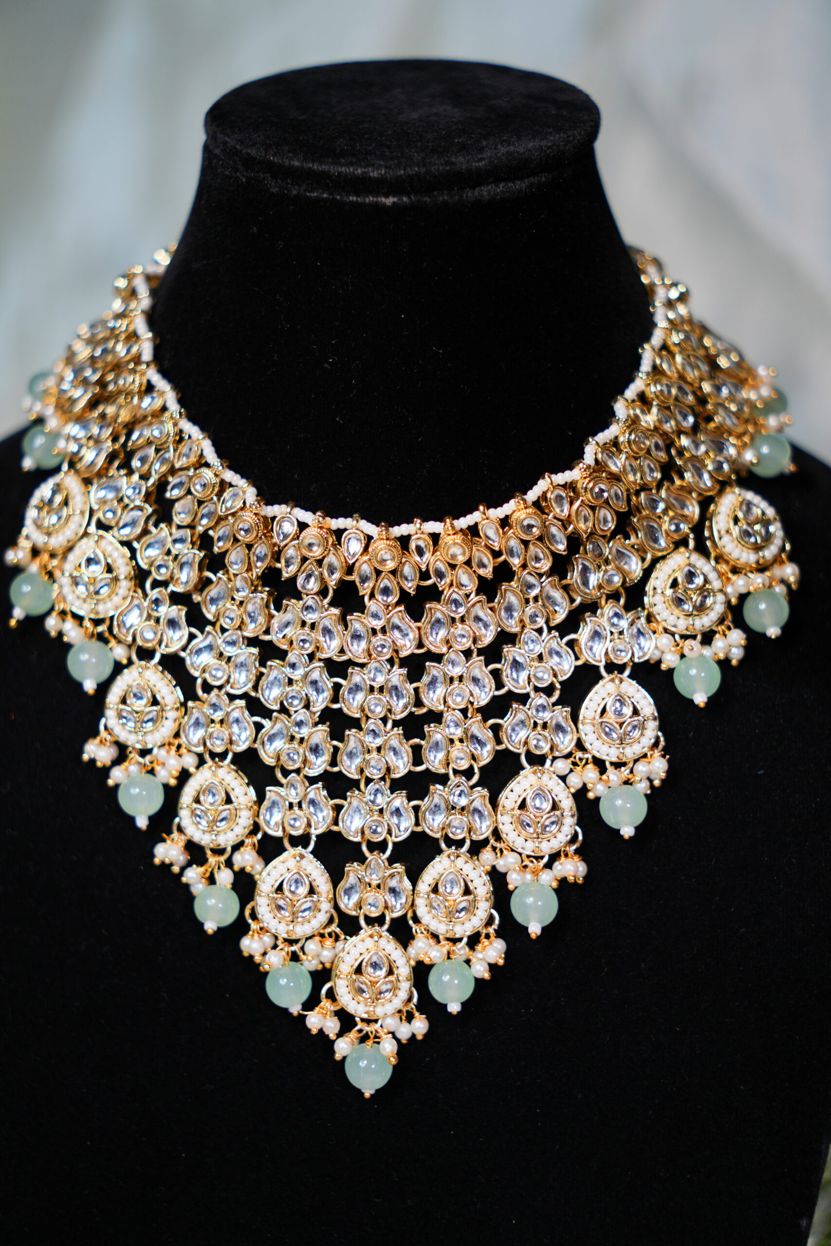 Made with moissanite, American diamonds, polki stones & silver plating