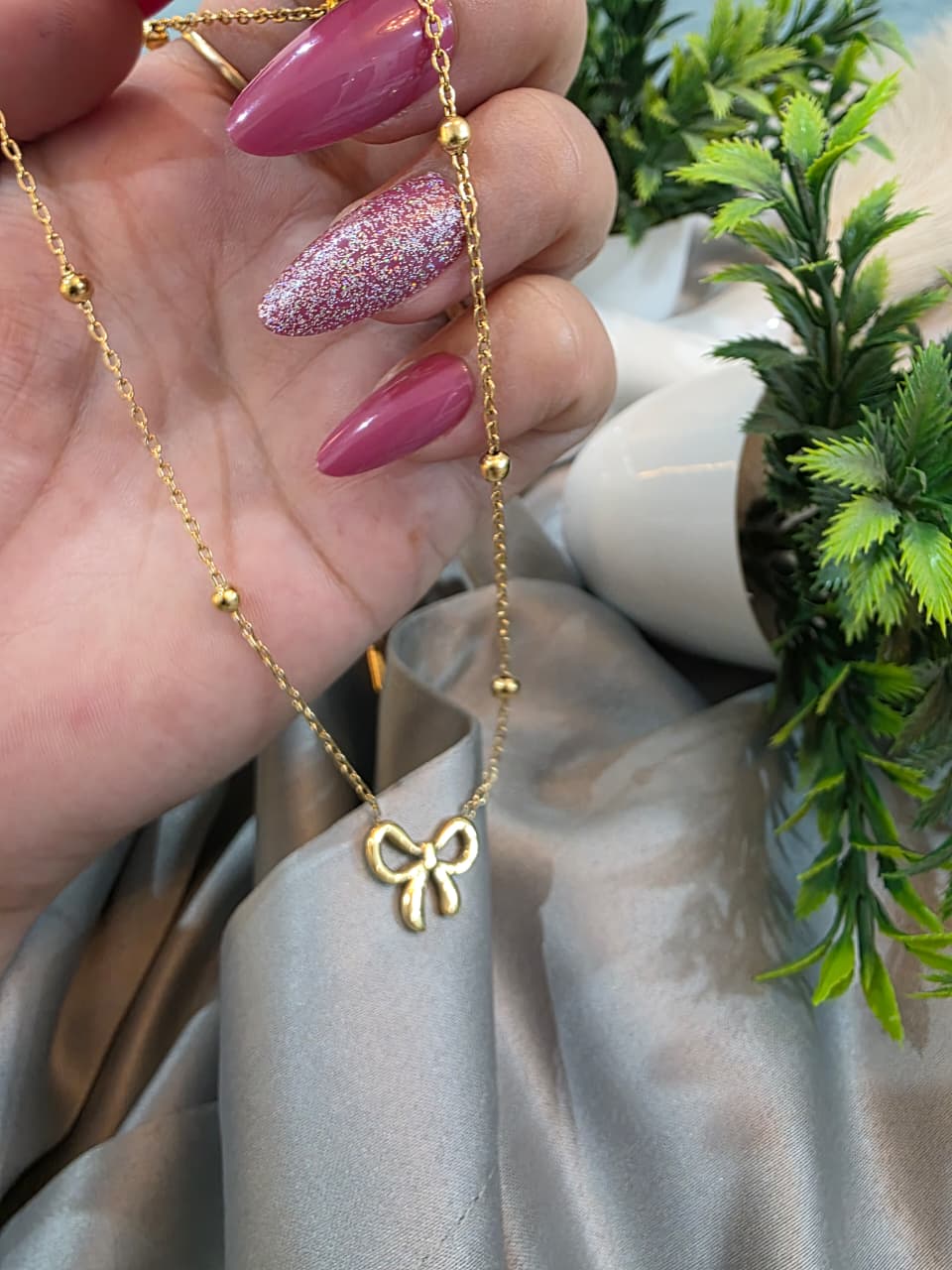 Be the first to review “Bow shaped chain pendent”