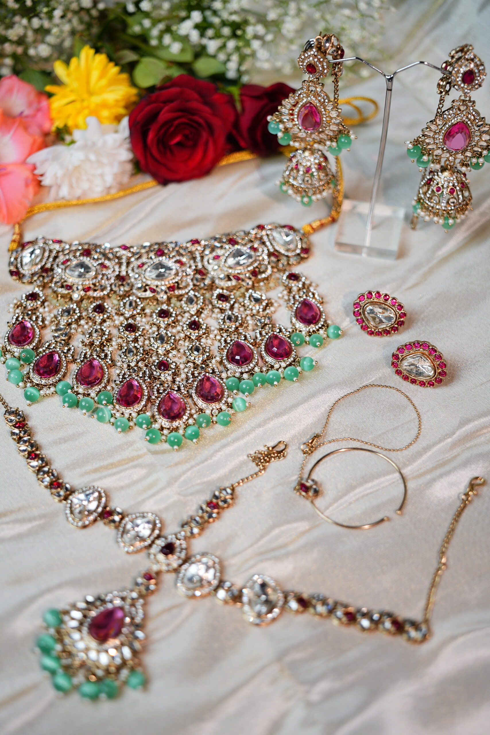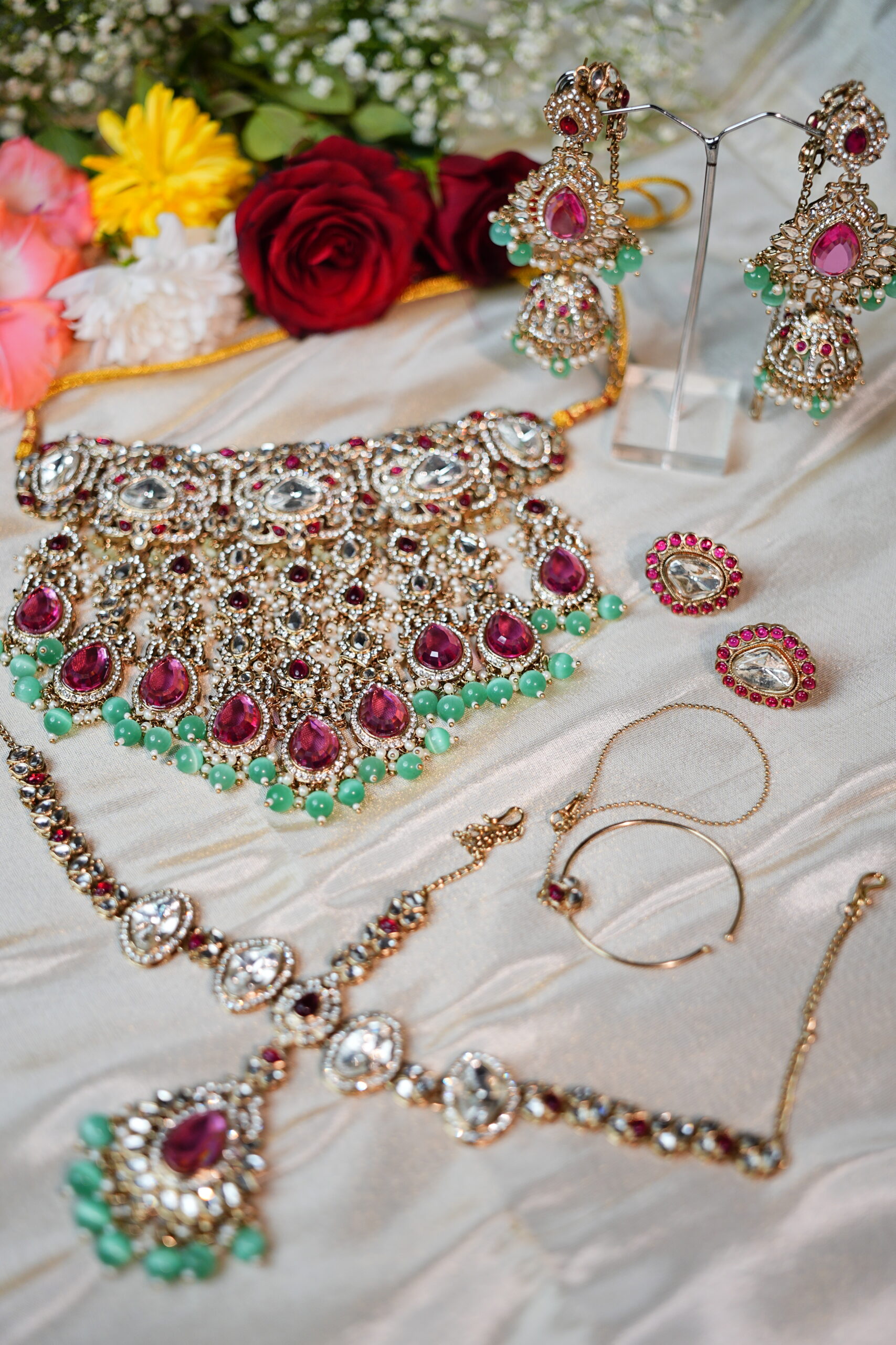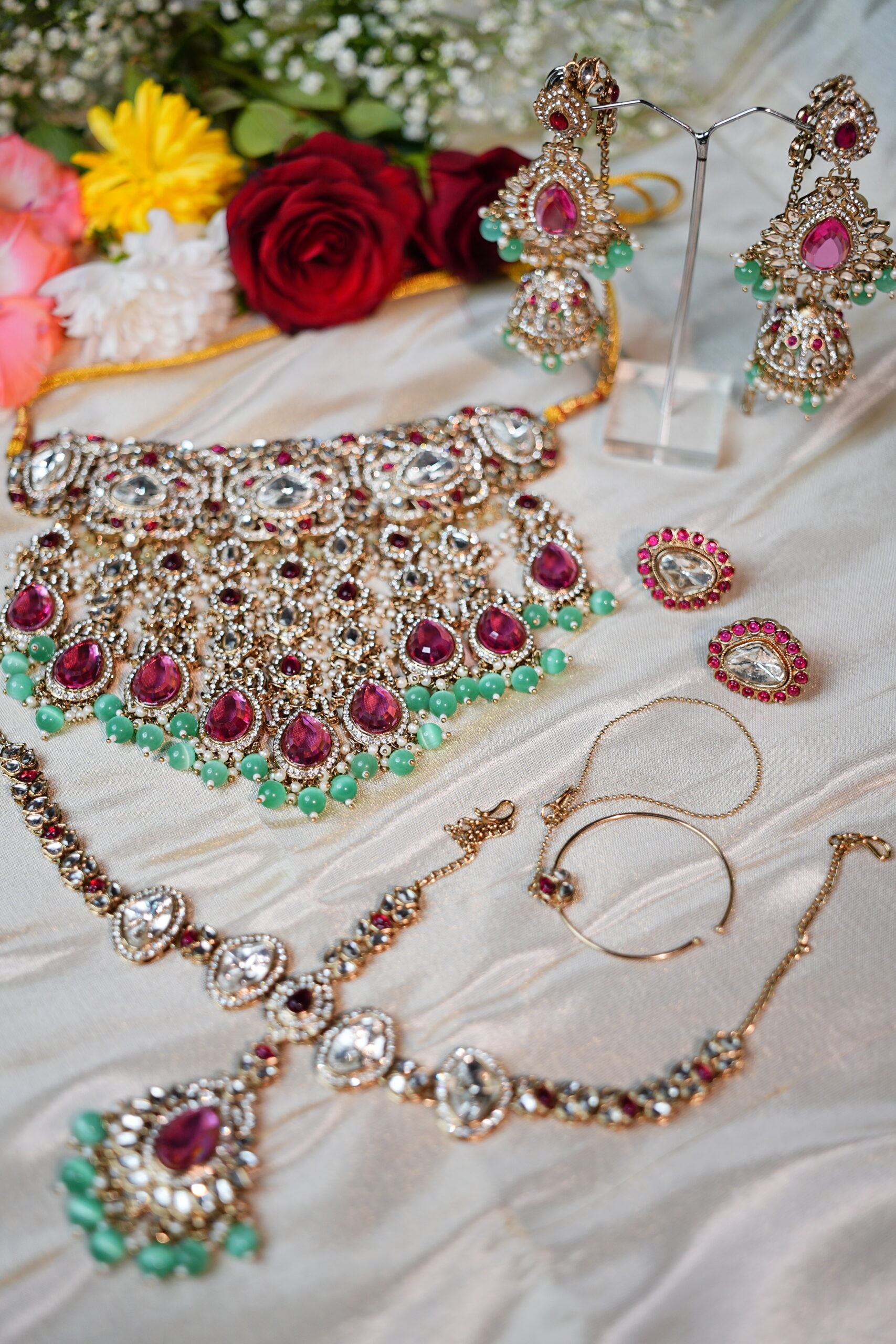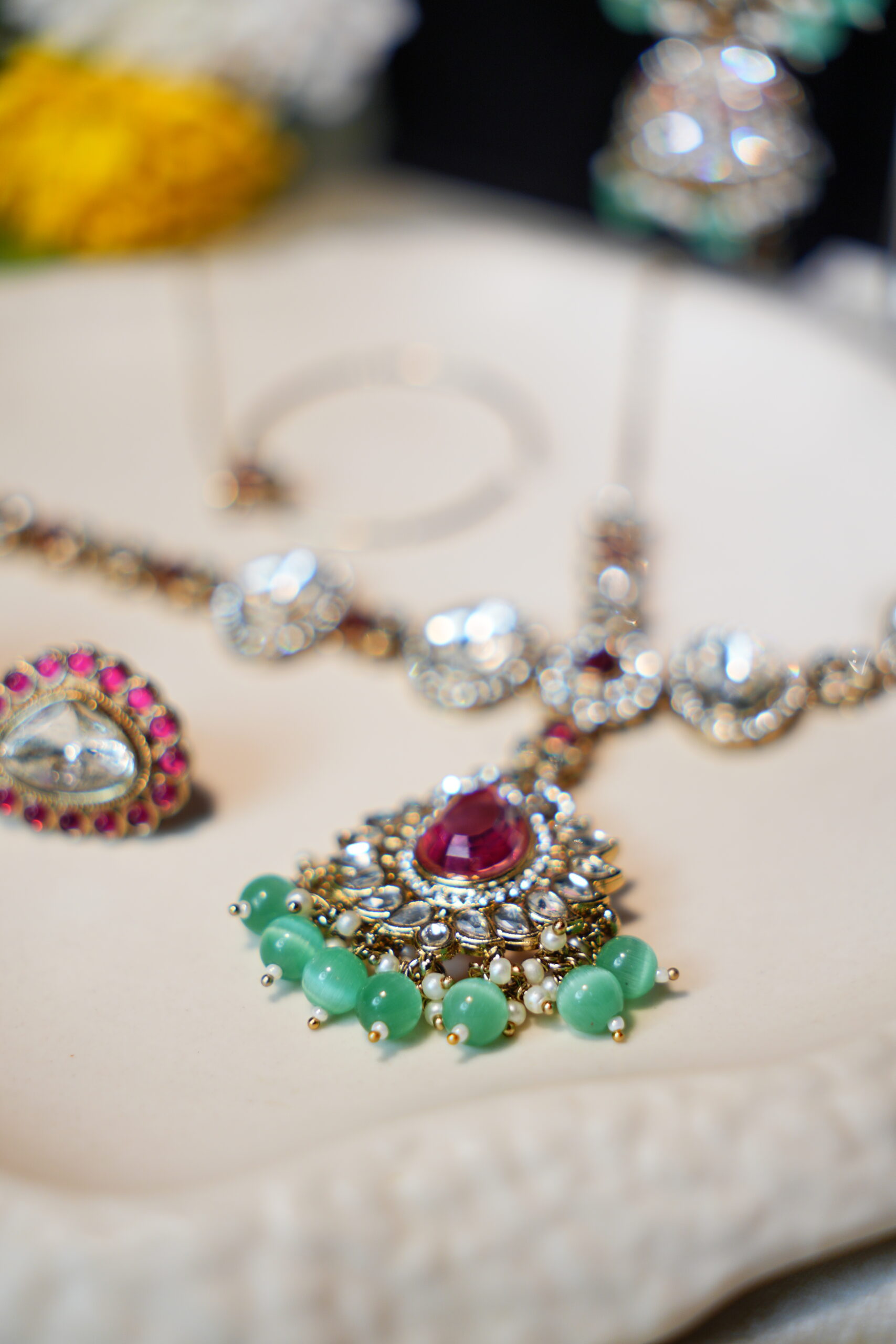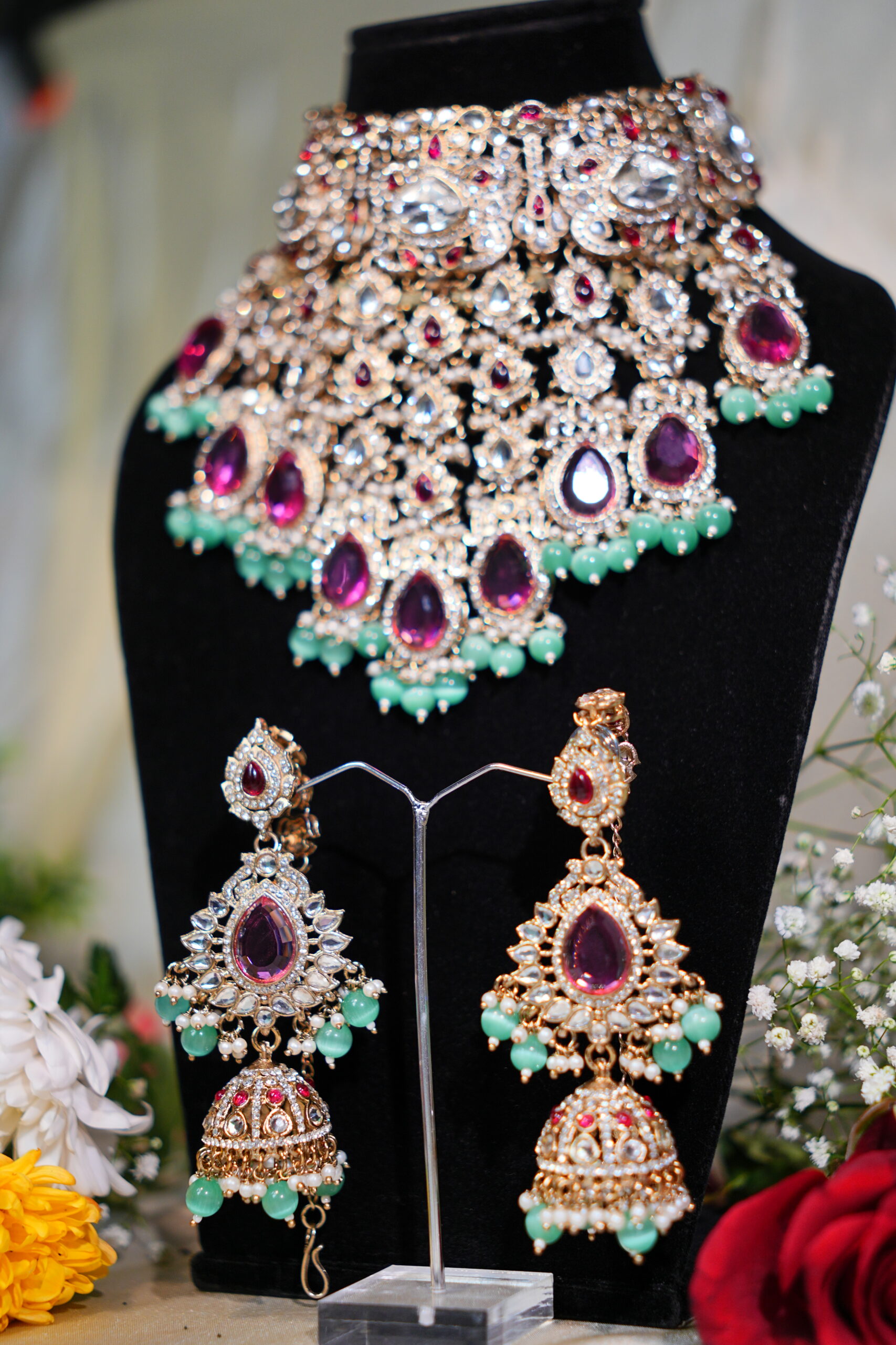 Made with moissanite, American diamonds, polki stones & silver plating
